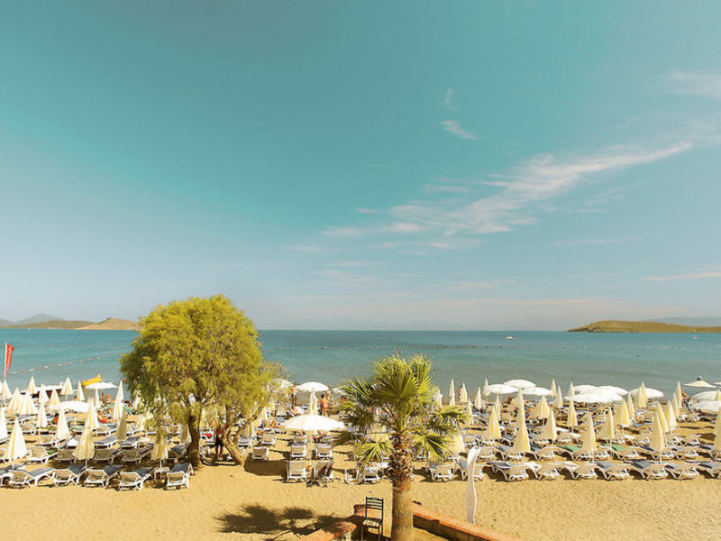 Kord jen přes Fussgangerstrandpromenade s obchody a bary od Yashi-pláže. Po Ortakent tam jsou asi 3 km a Bodrum cca 11 km. Minibus spoje. Doba přenosu z letiště Bodrum je přibližně 70 až 90 minut.