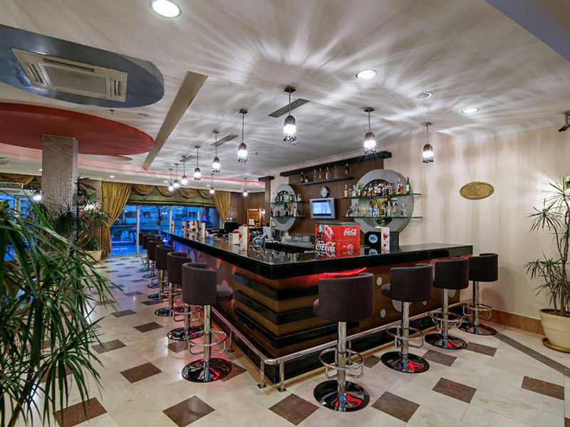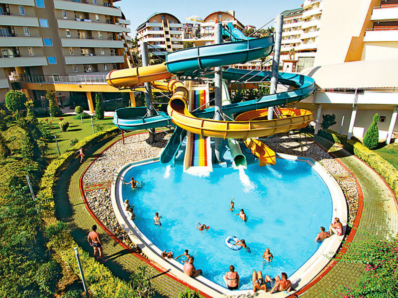 Vybavení: Hotel se skládá celkem z 443 pokojů v 7 budovách. Nabízí lobby s recepcí, výtahy, restauraci, bary, 3 à la carte restaurace, zasedací místnosti, obchody, amfiteátr a krytý vyhřívaný bazén v mimořádné sezóně. Ve venkovním areálu jsou 4 bazény s vodními skluzavkami (podle hodin / počasí) a bar u bazénu. Doktor (24 hodin).