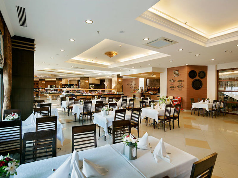 All Inclusive: snídaně, obědy a večeře formou bufetu, občerstvení (s dětským menu), odpolední káva / čaj a dort, polní noci. Otevřené občerstvení a místní alkoholické nápoje od 10:00 do 1:00. Večeře v jedné z 3 restaurací à la carte (od 1.4.-31.10 / osmanská, čínská a středomořská kuchyně / s předběžnou rezervací / 1x za pobyt / dovezené nápoje nejsou zahrnuty). Minibar je naplněn denně vodou a ovocným džusem.