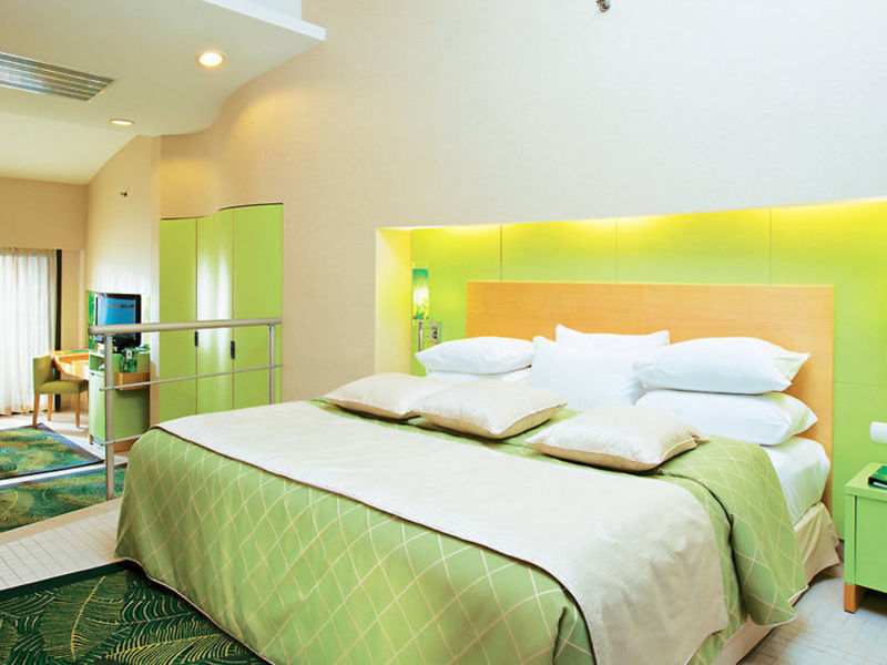 Vytvoření: Hotelový komplex se skládá z hlavní budovy funfstockigen s 230 pokoji a 80 Junior Suite vily a 48 vily. Nabízí vstupní halu s recepcí a barem, panoramatické výtahy, restaurace, dva à la carte restaurace, tři 15.5. do 31.10 (s Reservierungsgebuhr/off 7 let), cukrárna, konferenční místnosti, obchody a bary Frisør celý rok-. Krytý plavecký bazén. V zahradním komplexu jsou amfiteátr, vodopád oblast, Jacuzzi, bazéna další bazén se 3 tobogány (cca 15.5. -31.10.).