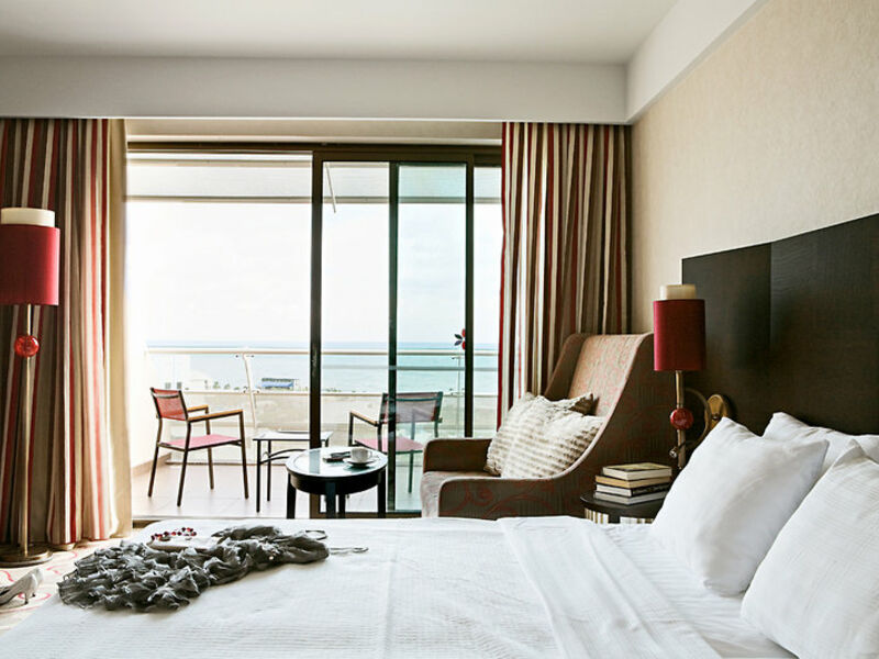 Ubytování: STANDARD ROOM : (A1-3A) Přibl. 42-50 m². Koupelna s vanou, sprchou, WC, vysoušečem vlasů, županem / papouškem, telefonem, LCD-SAT TV s hudebním kanálem, placená televize, připojení k internetu, WLAN (v ceně), minibar, (individuální), balkon, zahradní strana. 24hodinová pokojová služba (za poplatek). Volitelně v hlavní budově s částečným výhledem na moře (A1-3B) nebo s výhledem na moře (A1-3C). 6 pokojů pro tělesně postižené s výhledem do zahrady.