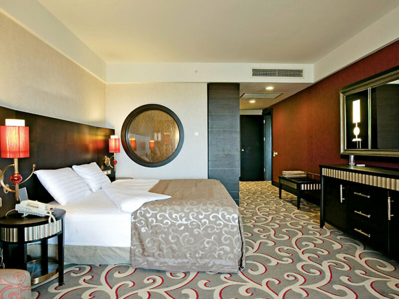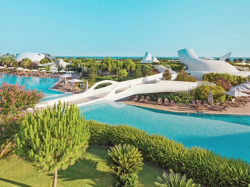 Vybavení: Hotelový komplex s 571 pokoji. Lobby s recepcí, lobby bar s posezením, výtahy, hlavní restaurace s terasou, několik restaurací à la carte (částečně od 1.6.-31.10., S předběžnou rezervací / rezervační poplatek / přístup dětí pouze v určitých dnech), bary (částečně závislé na počasí 15.5 .-31.10.), Cukrárna, konferenční místnosti, obchody a kadeřnictví. Krytý bazén. Amfiteátr a bazénová krajina s bazénem, aquaparkem, vířivkou, sluneční terasou (15.5. - 31.10. / Wertrabhängig). Doktor (stdw.).