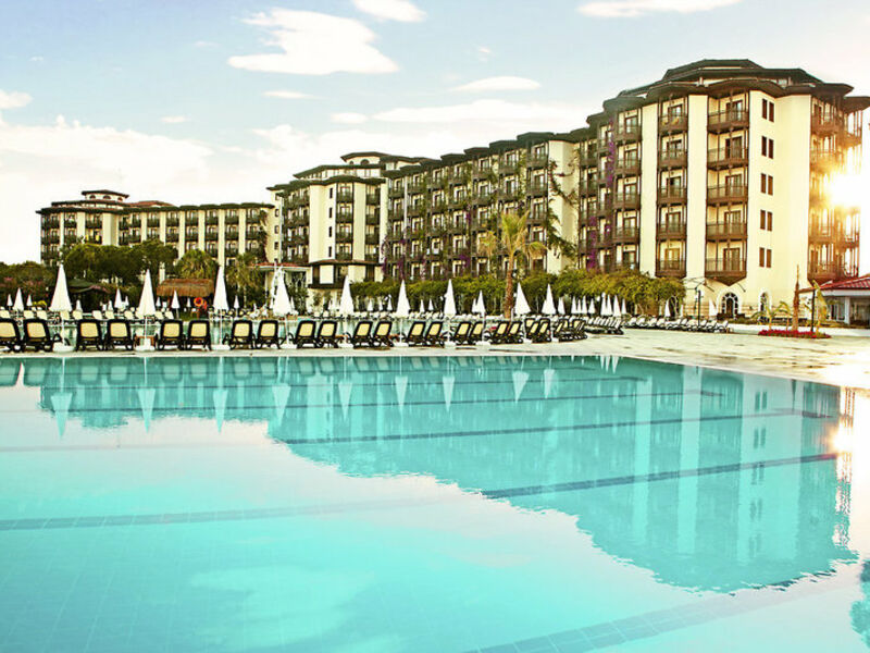 Vytvoření: 455 pokojů v hlavní budově a dvou a tří patrový Bungalov komplexů, stejně jako vstupní halu s recepcí, bufetová restaurace, 3 restaurace á la carte (turecká a asijskou kuchyni, pokrmy z ryb s přihlášením/Reservierungsgebuhr), snack bar, bary, konferenční místnost, obchody a Frisør. Krytý bazén (1.11. 31.3.). Amfiteátr, plavecký bazén s tobogány (od hodiny), napůl olympijský bazén, 2 relaxační bazény (jeden z nich pouze proDospělí), sluneční terasy (1.4.-31.10./wetterabhangig). Doktor (stdw.).