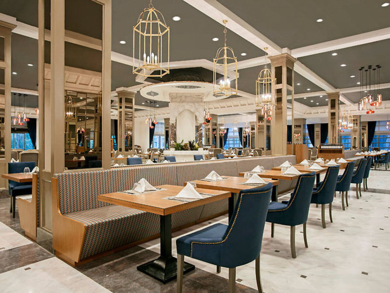 All Inclusive: Bufety. Místní a některé dovážené alkoholické a nealkoholické nápoje 24 hodin (piano bar), o 10-2:00 v různých barech, organické víno v piano bar, hlavní restaurace a À la carte restaurace včetně. Minibar je denně doplňován nealkoholické nápoje, voda, pivo. Čerstvě vymačkaný pomerančový džus k snídani. Snídaně pro spáče. Odpolední občerstvení, káva, čaj, koláče. Zmrzlina na oběd a večeři vHlavní restaurace. Večeře v restauracích À la carte, možné (mořské plody, mezinárodní a osmanské kuchyně 1 x / týden s knihou zahrnuty. Asijská kuchyně, Steakhouse a mexická restaurace za poplatek). Půlnoční snack. Čerstvé ovoce, zákusky a různé občerstvení jsou podávány v určitou dobu na pláži a u bazénu na lehátku. Kulinářský Festival: stanoví každé dva týdnyTurecká cesta pochoutky.
