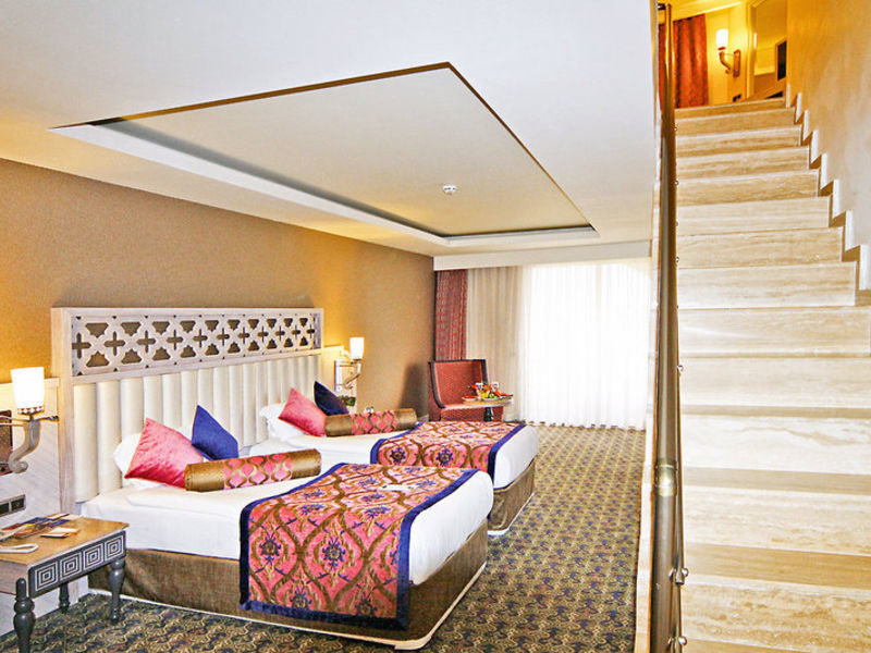 All Inclusive: Bufety. Spataufsteherfruhstuck. Občerstvení, zákusky a zmrzlina (1.4. -31.10.) na večeři, turecký stan. Půlnoční bufet. Místní nealkoholické a některé místní a vybrané dovážené alkoholické nápoje 24 hodin každé otevřené bary. Minibar je plná vody, nealkoholické nápoje a pivo každý den. Nosit náramek AI je povinné. Čerstvě vymačkané ovocné šťávy, luxusní nápoje, lahvové nápojenení součástí dodávky.
