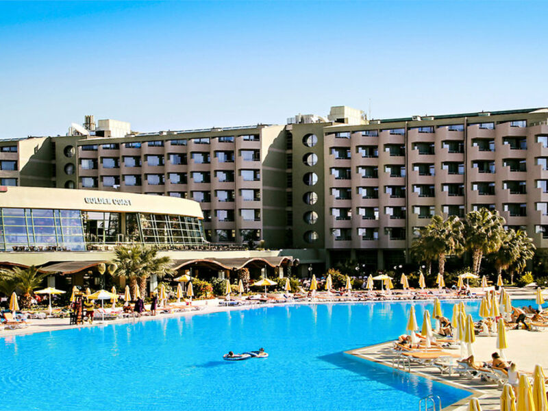 Vytvoření: Komplex tvoří 3 budovy s celkem 404 pokojů a nabízí vstupní halu s recepcí a lobby baru, výtahy, restaurace s terasou, 6 à la carte restaurace (turkische, Osmanské říše, vzdálené Orientální a italskou kuchyni, gastronomické a Steak-House/s Voranmeldung/1.5.-31.10./gegen servisní poplatek/počasí svah boční / z toho 2 v Club Golden Beach), bary, konferenční místnost, obchody, Frisør a animace fáze. Vyhřívaný krytý bazén sDětský bazén (pre - a post-sezony). V zahradní, velký plavecký bazén se sluneční terasou, stejně jako 10.000 m2 velký Aqua Park (1.5.-31.10/wetterabhangig/10.00-12.00/14.00-17.30 hodin) s bazény a 11 tobogány (stdw.). Doktor (stdw.).