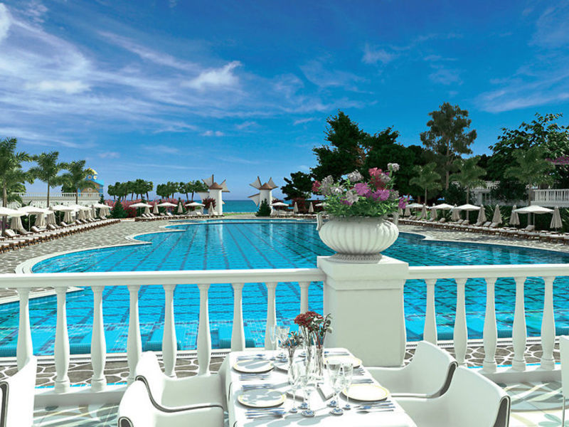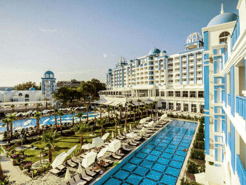 Vybavení: Hotel má 404 pokojů, rozložené 5-hlavní budova a 4podlažní budově. Mezi další zařízení patří 1 vstupní hala s recepcí, výtahy, obchodní centrum (za poplatek), bufetová restaurace, 3 a-la carte restaurace, bary, kavárnu, minimarket a obchody. V venkovní komplexu jsou 2 bazény s lehátky a bazén s tobogány. Lehátka, podložky, slunečníky a osušky jsou u bazénu a na pláži, včetně.