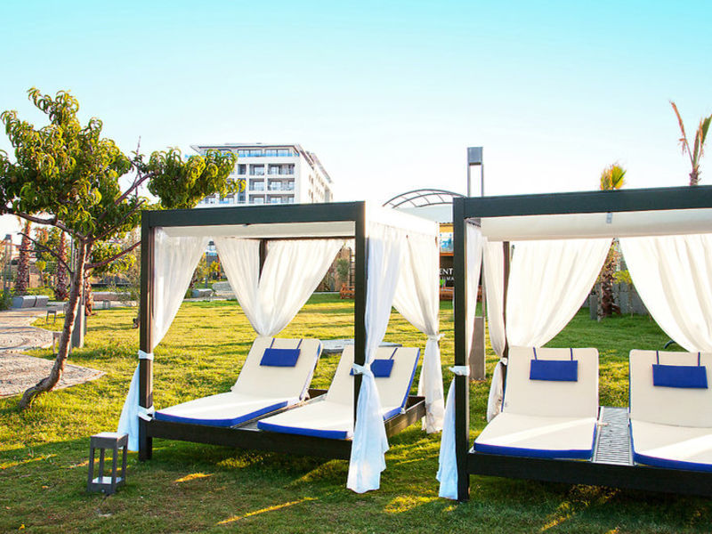 Vybavení: 2017 otevřený hotel s 285 pokoji. Lobby s recepcí, Wi-Fi v celém areálu (včetně), výtahy, bufetová restaurace, a la carte restaurace (asijské a rybí pokrmy, grilování za rezervaci), kavárna a mini market. Venkovní plocha s velkým bazénem s tobogány (děti do 12 let pouze v doprovodu dospělého) a sluneční terasy (1.4.-31.10.). Plážové židle, deštníky / střechy na pláži a bazén, včetně osušky (1.4.-31.10.).