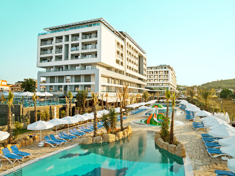 Vybavení: Postaven v roce 2017, hotel má 285 pokojů ve 2 budovách s 5 podlažími. Nabízí vstupní halu s recepcí, výtahy, bufetovou restauraci s terasou, 3 à la carte restaurace (asijské a rybí pokrmy, gril za poplatek), bary, snack bar, kavárna, kadeřnictví, salon krásy a mini market. Krytý bazén. Ve venkovním areálu je bazén se sluneční terasou a snack bar u bazénu a relaxační bazén (od 16 let). Aquapark se 4 tobogány (podle hodin / počasí závislých / od 12 let).