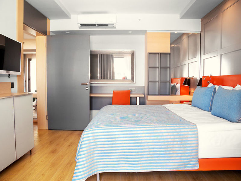 Ubytování: dvoulůžkový pokoj (A1-3A): cca. 30 m², laminátové podlahy, klimatizace, trezor, telefon, WLAN (v ceně), minibar, satelitní TV, telefon, koupelna se sprchou, WC, vysoušeč vlasů, balkon, strana pozemku. Volitelný boční pohled na moře (A1-3B, A1K) nebo výhled na moře (A1-3C). Pokoj typu Superior (A1-2G, A1-2X): Přibl. 32 m2, s částečným výhledem na moře, jinak jako A2A. K dispozici je další přístup do sauny a hammam, večeře buď denně v a la carte restauraci. Pokojová služba je zahrnuta v ceně (1x za den). Prioritní check-in a pozdní odhlášení až do 15:00 (podle dostupnosti).