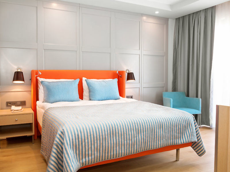 SUPERIOR ROOM: (A1-2G) Stejně jako standardní pokoj, asi 32 m², boční pohled na moře. Zahrnuje přístup do sauny a hammam, večeře buď denně v restauracích à la carte, preferovanou rezervaci ležáků přes Holiday Concierge. Pokojová služba je zahrnuta v ceně (1x za den). Prioritní check-in a pozdní odhlášení až do 15:00 (podle dostupnosti).