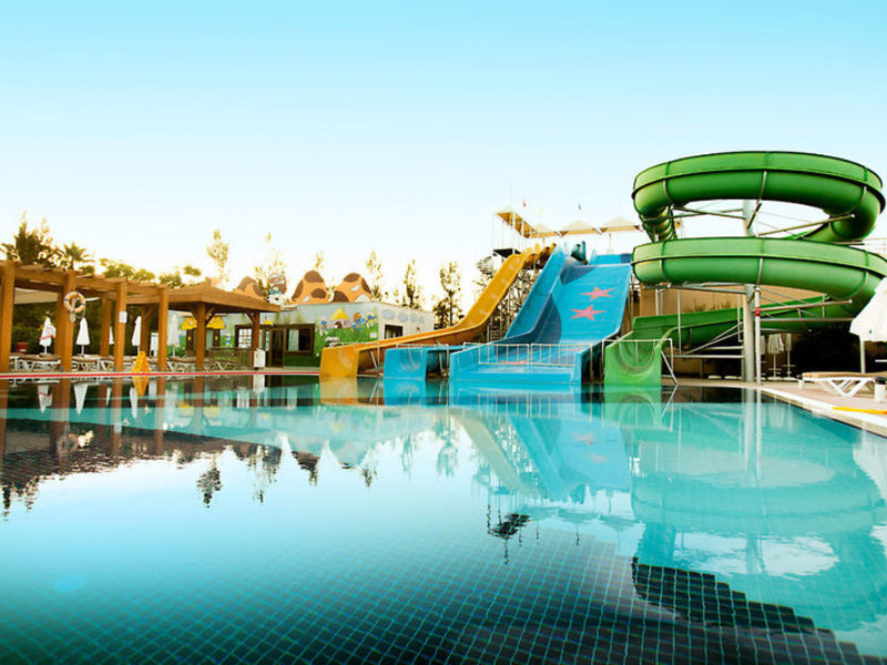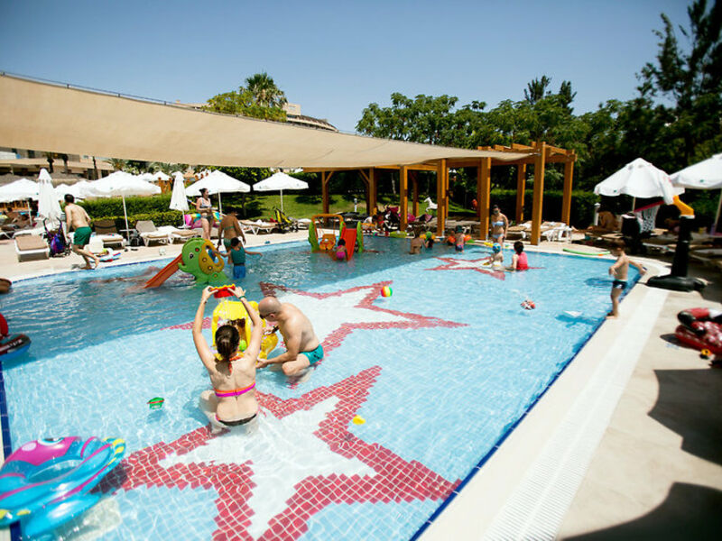 Vybavení: Tento 442-pokojový hotel se skládá z vstupní haly s recepcí a lobby baru, výtahu, restaurace s terasou, 5 à la carte restaurací (od 1.4 do 31.10 za poplatek), bary, konferenční místnosti, obchody, kadeřnictví. Krytý bazén (1.11.-31.3.). Amfiteátr a bazén s 3 tobogány (od hodiny) od 1.4. Do 31.10. Doktor a sestra (o hodinu).