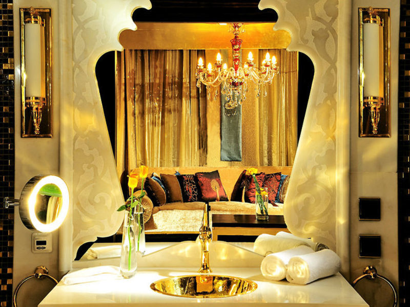 546 pokojů a apartmá jsou velmi elegantní se starožitným nábytkem a vyzdobené podle situace v evropském, orientální nebo opulentní osmanského paláce stylu a vybaveny multimediální systém, TV, WLAN, mini barem (součástí balení), trezor, župany, pantofle a fén.