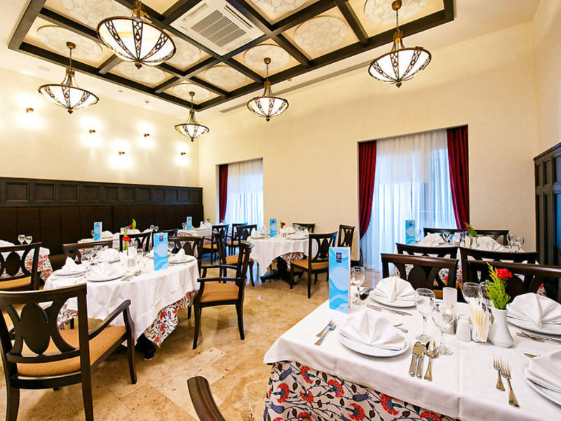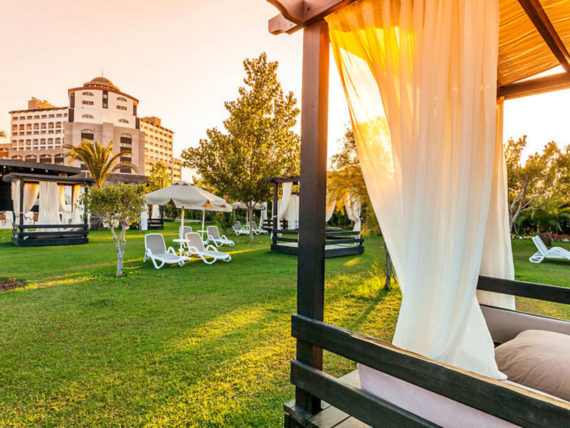 All Inclusive: snídaně, snídaně pozdní od 10:00 do 11:00, oběd a večeře formou bufetu, občerstvení (po hodině), odpolední káva, čaj a dort, cukrárna, zmrzlina (1.11.-31.3.11.00-18.00, 1.4.-31.10. 10.00-24.00), večeře buď v jedné z 3 restaurací à la carte (turecká a mezinárodní kuchyně a rybí speciality / s rezervací / 1x týdně / od 1.11. Do 31.3 pouze s minimální obsazeností), půlnoci snack od 23.00 až do půlnoci, zmrzlina od 11.00 do 24.00 (1.4.-31.10.). Občerstvení, místní a někteří importovaní alkoholici 24 hodin, v nočním klubu od 23.00 do 2.00. Minibar je denně doplněn nealkoholickými nápoji, vodou a pivem. Čerstvý pomerančový džus na snídani.