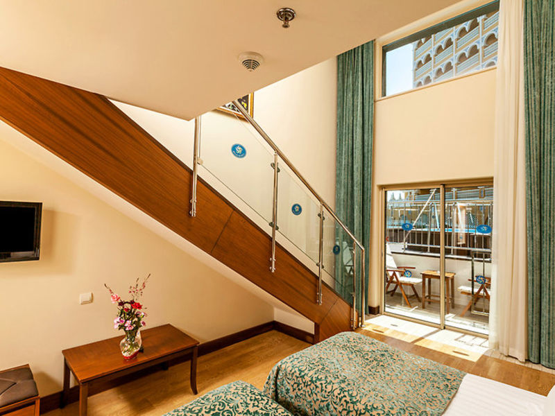 Vybavení: 322 pokojů. Další vybavení patří výtahy, lobby s recepcí, internetový koutek (za poplatek), WLAN (v ceně), restaurace, a la carte restaurace, bary, obchody. V zahradě je k dispozici bazén (březen, duben, říjen, listopad vyhřívaný) se 3 tobogány (1.4.-31.10.), Plážový bar, pool bar. Lehátka, slunečníky, plážové ručníky (výměna za poplatek) jsou součástí bazénu a na pláži.
