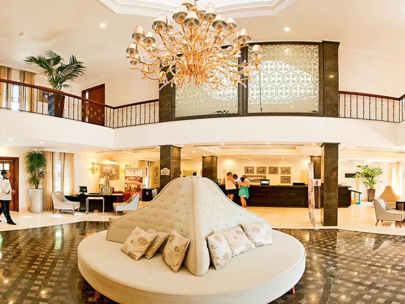 Vybavení Ve 150.000 m² velká zahrada složitých 2-proslavený penzijním distribuovat atria stylu s 450 pokoji. Středisko disponuje TV koutek, koutek na čtení v Turkic Cafe, Wi-Fi v některých prostorách hotelu (vč.), Zrekonstruovaná restaurace s velkou terasou, a la carte panoramatické restauraci (květen-září, geg. Born, s výhradou) , plážová restaurace (květen-září), bary, Irish Pub (březen-květen, říjen) a obchody. vněBazénu s bary u bazénu, velký Ali Bey aqua parku (25.000 m², WLAN vč.) Se spoustou diapozitivů pro všechny věkové kategorie a zábavního parku (za poplatek. Born). Vyhřívaný bazén (březen, duben, říjen), organických zahrádka. Lehátka, slunečníky a ručníky jsou u bazénu a pláže jsou zahrnuty.
