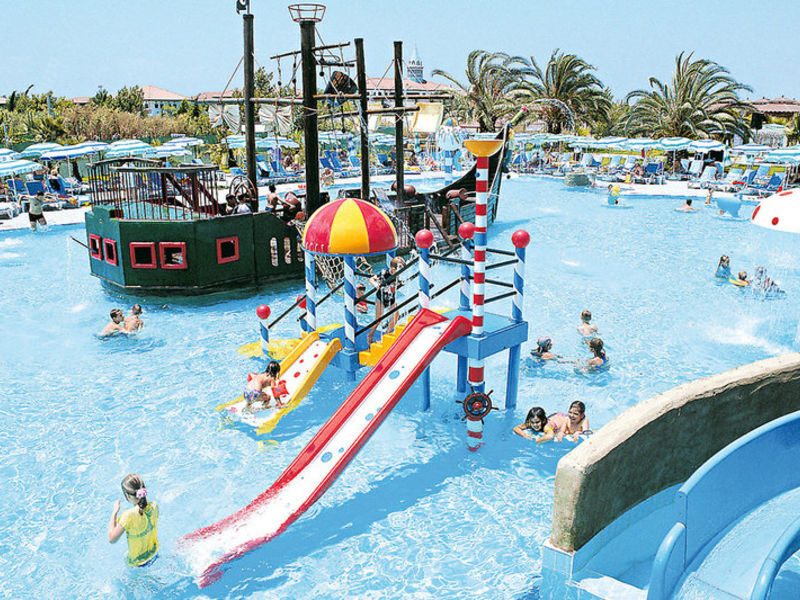 Rodiny Samostatný dětský bazén, Mini klub od 4 do 8 let a 9-12 let, dospívající klub od 13-16 let (květen září), dětské hřiště, Aqua Park (25 000 m2) s 25 snímky (včetně Wi-Fi), herní prvky v moři (pokud počasí dovolí).