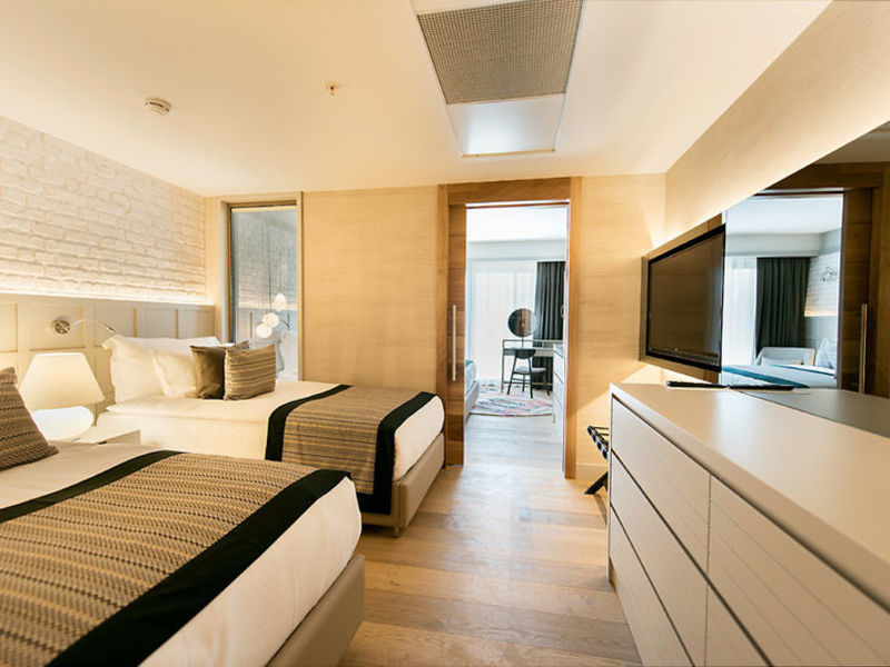 Ubytování: Superior pokoj (A1-3E), cca 34 m2, laminátové podlahy, klimatizace, zařízení na přípravu kávy a čaje, telefon, satelitní TV, minibar, WiFi zdarma, trezor, koupelna se sprchou, WC, Župany a boční pohled na moře. K dispozici také jako úsporný pokoj (A2S), cca 28 m2, s částečným výhledem na moře. Rodinný pokoj (A2-3G), cca 43m2, 2 ložnice (jedna s francouzskou postelí, jedna s 2 samostatnými lůžky pro děti), oddělené posuvnými dveřmi, balkón, boční pohled na moře. Deluxe pokoj (A1-3F), cca 39 m2, manželská postel, balkon s přímým výhledem na moře. Plavba na pokoji (A1-3H): cca 44m2, koupelna se sprchovým koutem, terasa s přístupem ke společnému bazénu (1,11.-1,4 vyhřívaný), bez bočního výhledu na moře. Penthouse suite (A1-3I), cca 67m2, koupelna se sprchovým koutem, vířivka a 2 umyvadla, mini-Nespresso stroj, lehátka na balkón, boční pohled na moře.