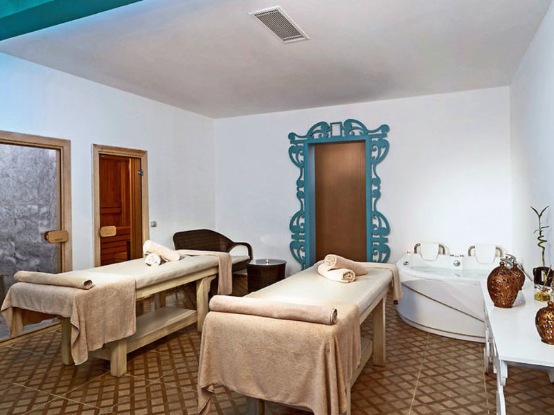 Vybavení: 347 pokojů v několika budovách, lobby s recepcí, lobby bar, restaurace s terasou, 3 à la carte restaurace (italská a osmanská kuchyně, rybí speciality / 15.5.-15.10. Bary, obchody, kadeřnictví a krytý bazén / relaxační bazén. Ve venkovním bazénu a 4 vodních skluzavkách (od hodiny do poloviny května až do poloviny října). Doktor a sestra (o hodinu).
