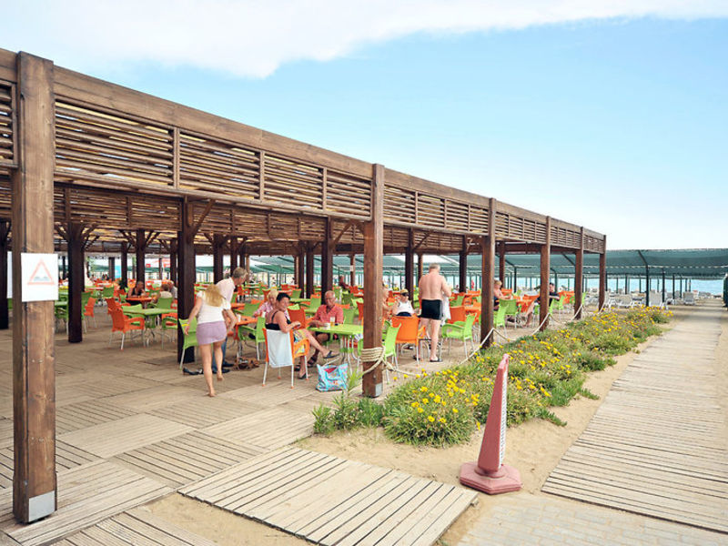 Vybavení 334 pokojů ve 3 budovách s 5 pater, výtahy. Vstupní hala s recepcí, internetový koutek (za poplatek), WiFi (lobby včetně), restaurace, několik restaurací a la carte (od poloviny května do poloviny října), bary a obchody. Venkovní 3 bazény (21.4.-31.10.), Vodní klouzačky (15.5.-15.10.) A pool snack bar. Lehátka, slunečníky a ručníky u bazénu a na pláži jsou zahrnuty. Plážový snack bar.