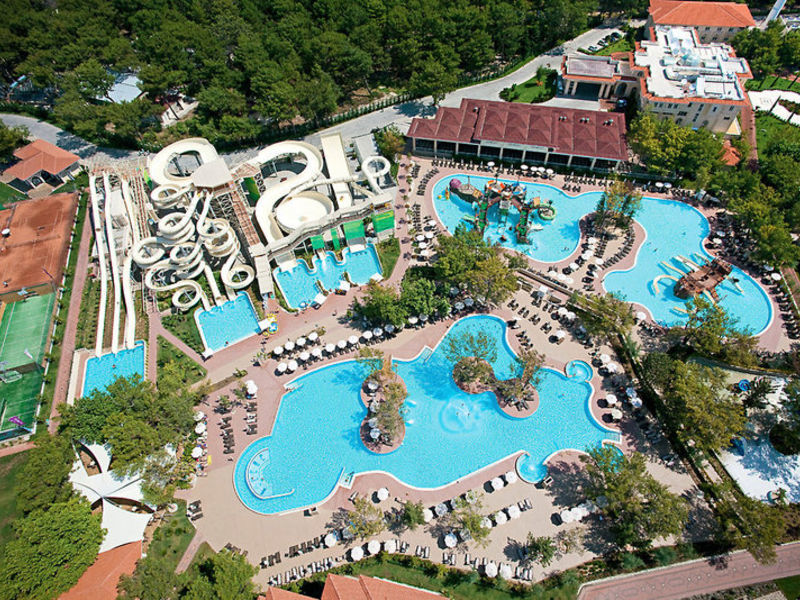 Vybavení: Rozsáhlý hotelový komplex, který se skládá ze dvou až třípatrových budov, zahrnuje celkem 674 pokojů. Nabízí lobby s recepcí, restauraci s terasou, 4 à la carte restaurace, bary, irskou hospodu, obchody, mini market, kadeřnictví, kosmetické centrum, velký amfiteátr a obchodní centrum. V areálu jsou 2 velké bazény se slunečními terasami, 9 bazény pro hosty bazénových domů, velký aquapark se 26 skluzavkami, vodní postele a vířivky. Doktor (za hodinu). Půjčení auta.
