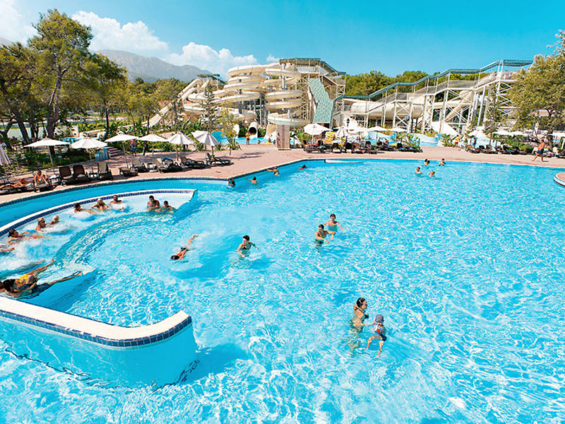 Vybavení: Rozsáhlý hotelový komplex, který se skládá ze dvou až třípatrových budov, zahrnuje celkem 674 pokojů. Nabízí lobby s recepcí, restauraci s terasou, 4 à la carte restaurace, bary, irskou hospodu, obchody, mini market, kadeřnictví, kosmetické centrum, velký amfiteátr a obchodní centrum. V areálu jsou 2 velké bazény se slunečními terasami, 9 bazény pro hosty bazénových domů, velký aquapark se 26 skluzavkami, vodní postele a vířivky. Doktor (za hodinu). Půjčení auta.