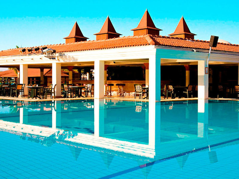 Vybavení: Hotelový komplex s 559 pokoji nabízí recepci, bufetovou restauraci, 2 à la carte restaurace, bar, obchody, kadeřnictví. V zahradě se nacházejí 2 bazény, jedna se třemi vodními skluzavkami (podle hodiny a počasí) a bar u bazénu. Doktor (za poplatek) a zdravotní sestra (o hodinu).